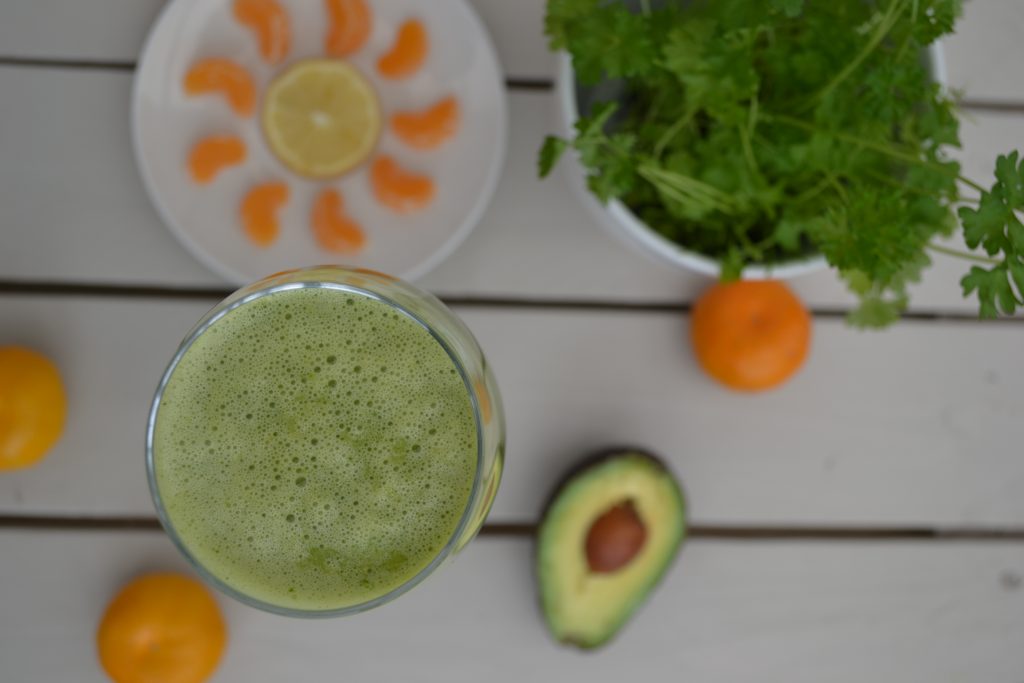 My favourite smoothie mix is a handful of spinach, half of a banana, a piece of honeymelon,  and orange, half of an avocado or 2 or 3 tablespoons of chia seeds, but I usually throw in to the mixing cup what I’ve got by hand or in the fridge. As long as it’s high in fibre, it’s good for you. 🙂